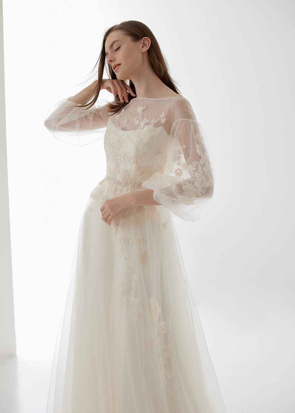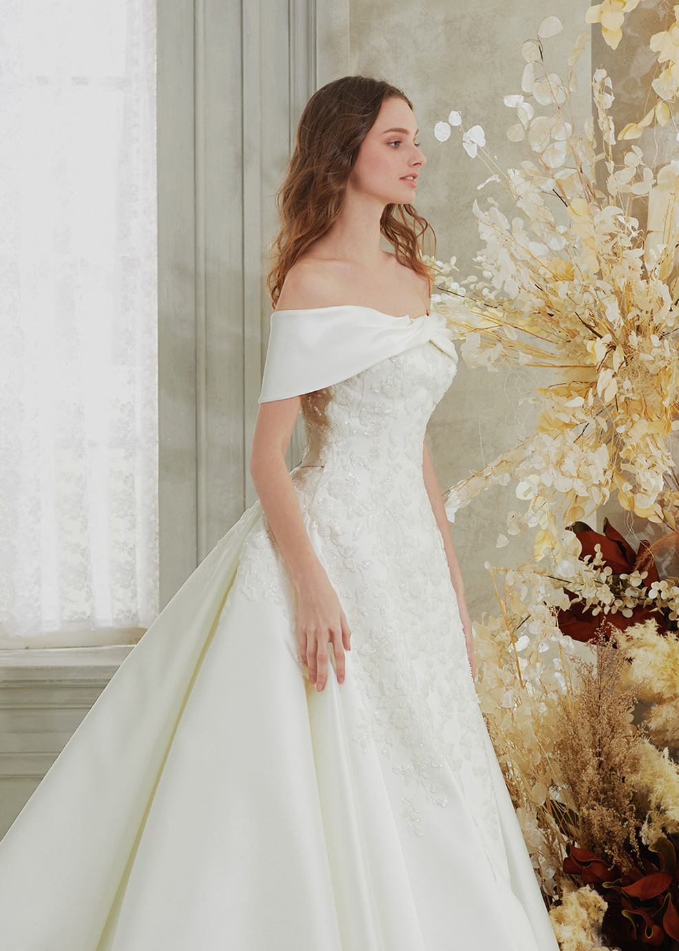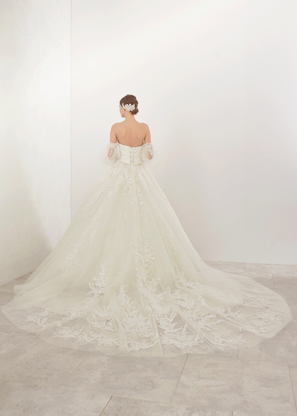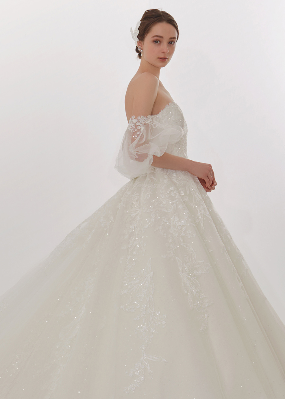 ここ最近根強い人気の花柄、フラワードレスは昨年から2022年も引き続き人気です。人気の理由は、花柄やフラワーモチーフのドレスは、ドレスだけで十分に華があり可憐です。またブーケやアクセサリーをシンプルにして、ドレスの艶やかさで魅せたいという花嫁様にはぴったりのということが言えます。