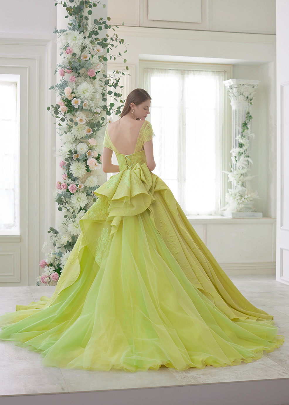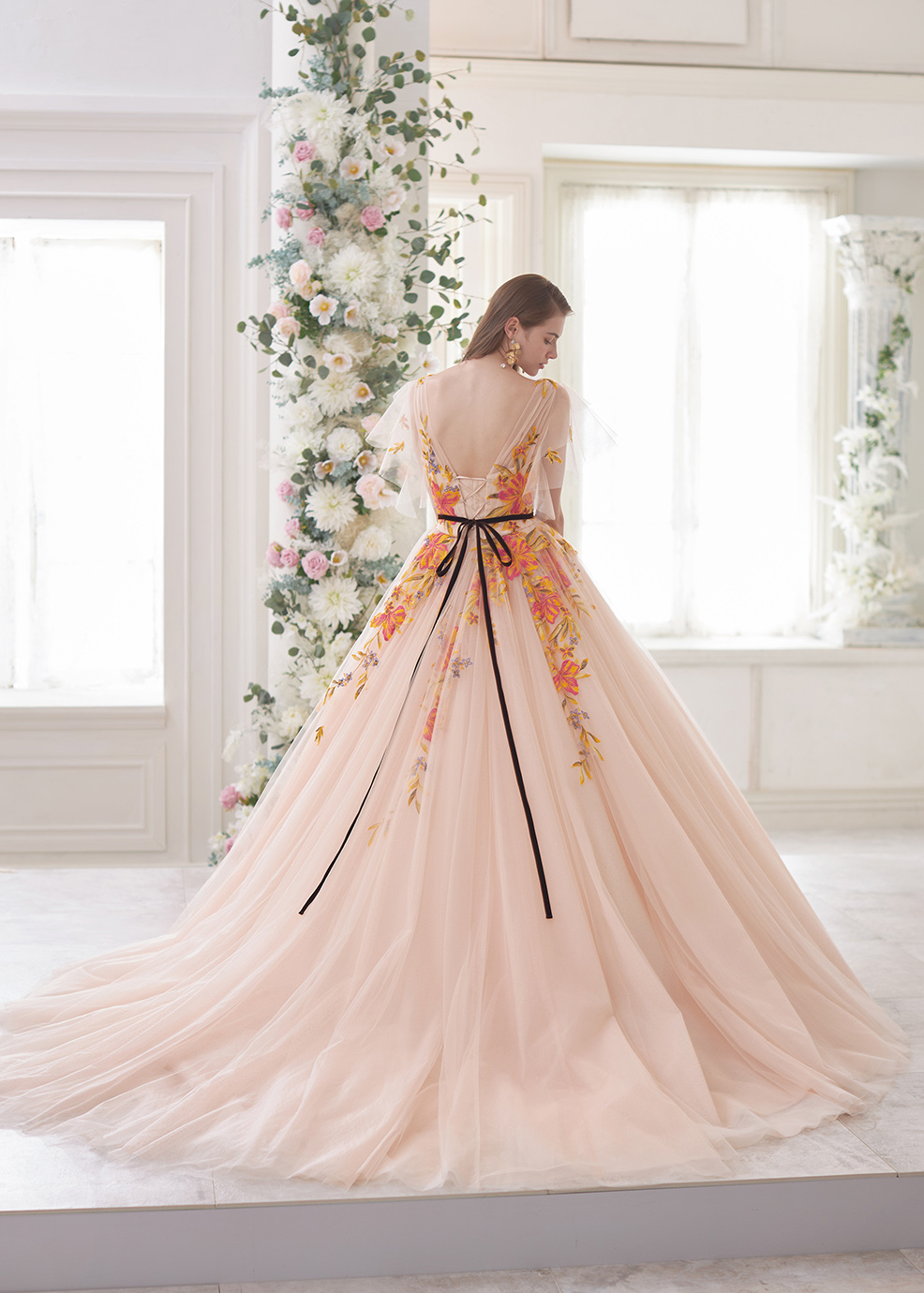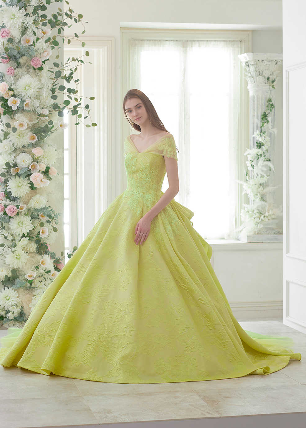 特徴的なレース使い、ほんの少しナチュラルカラーを混ぜたアンティーク調で新鮮なウェディングドレスや、鮮やかで気分が上がるビビットなカラー使い、レトロポップなフラワー刺繍など、心が弾むカラーバリエーションが魅力です。