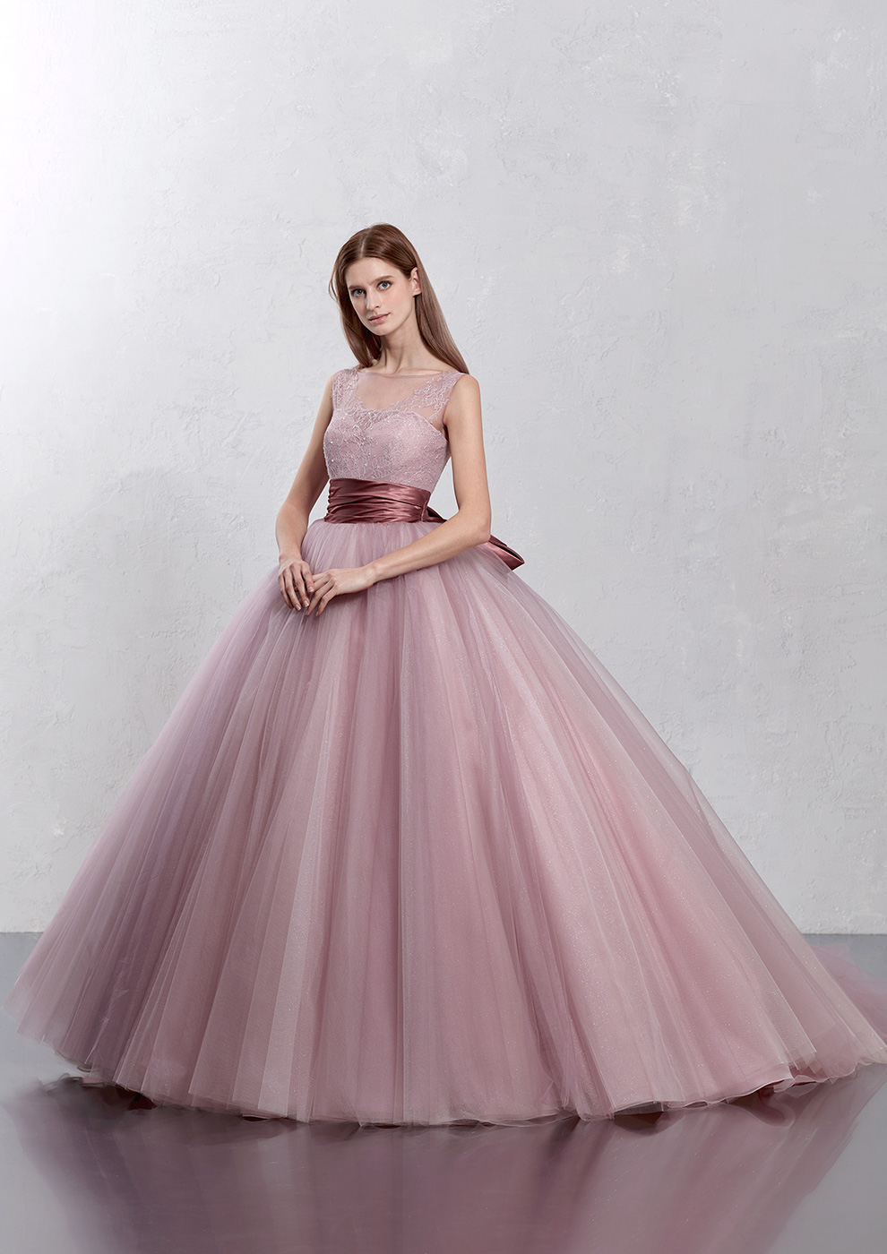 淡いピンクやニュアンスカラーのピンクベージュのカラードレス