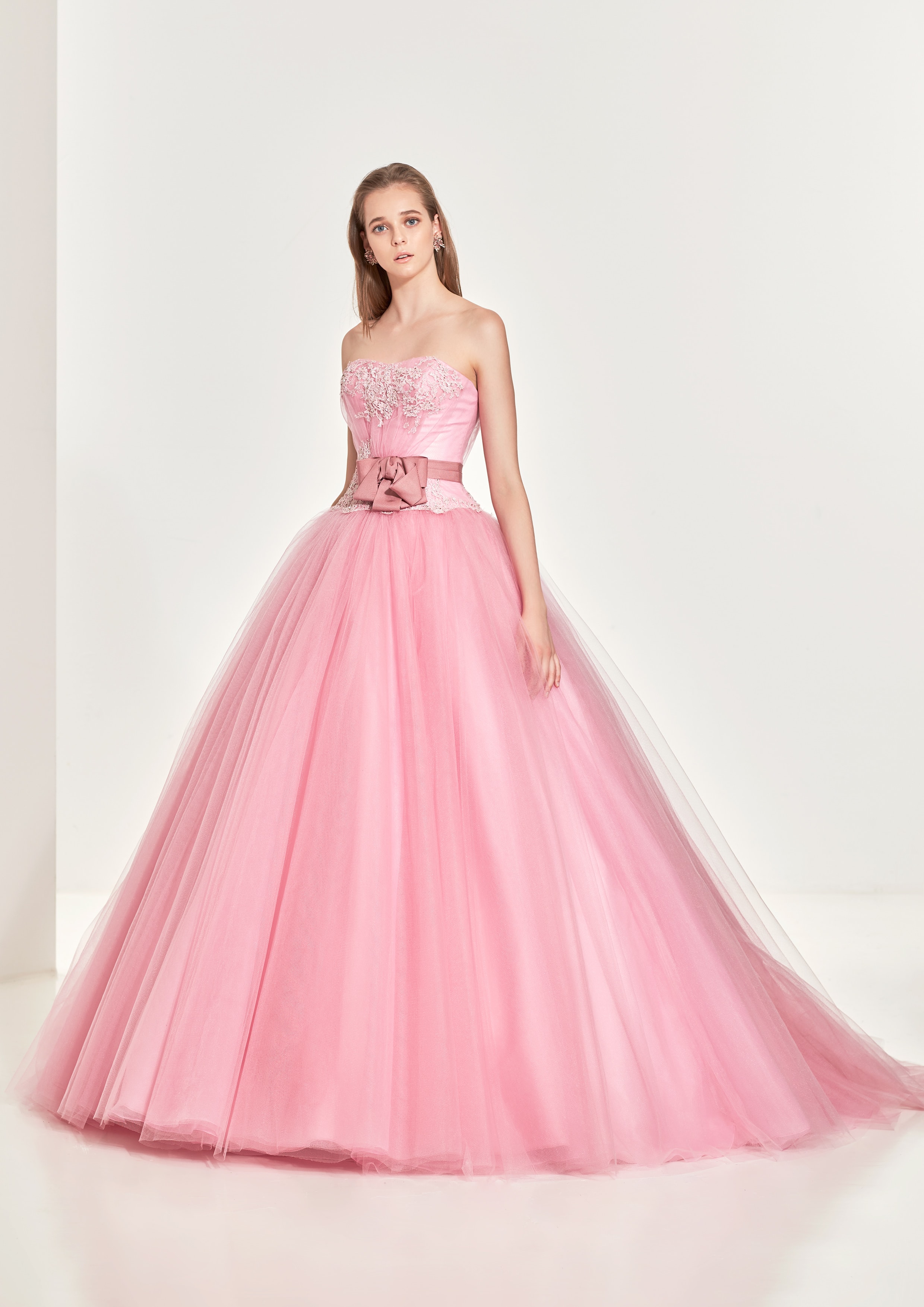 ブライトカラーが優しさを感じるピンクのカラードレス