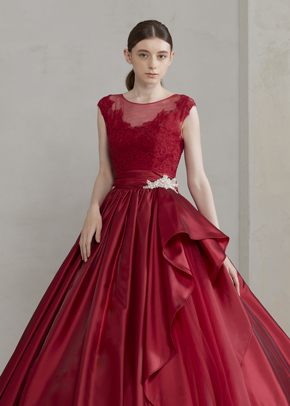 【第2位】ワインレッドのカラーが洗練された花嫁様を演出するシンプルなボリュームドレス