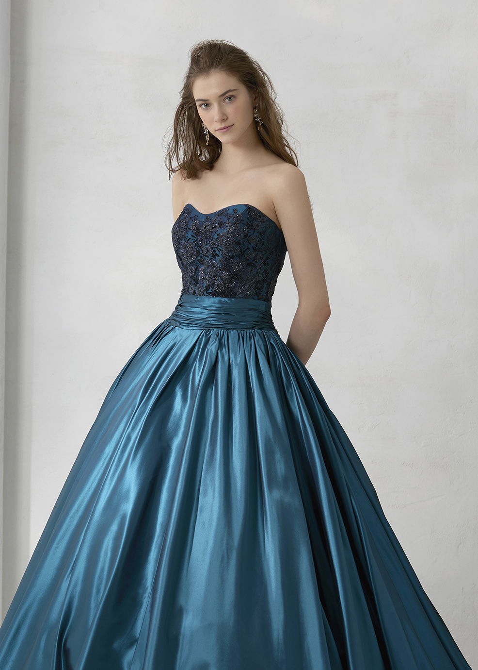 2022年のトレンドカラーと言えば、アパレルではグリーンをよく見かけますね。ウェディングでも、グリーンカラーのドレス人気は根強く、2着ランクイン!また、ブルーカラーも引き続き選ばれる花嫁様は多く見受けられます。クールな印象もあり、大人花嫁様にもお選びいただいていて、人気を押し上げています。