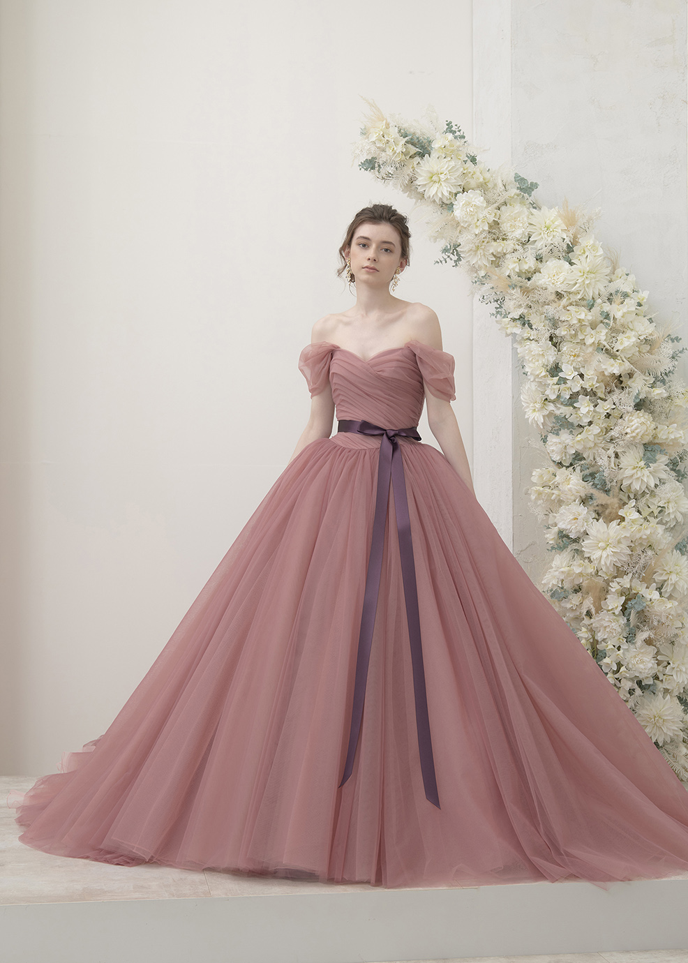 やはり1位は不動のピンクカラードレス。こちらのドレスはトレンドのパフスリーブ、フリルのお袖などをオンオフでき自分らしくカスタマイズできるところも◎