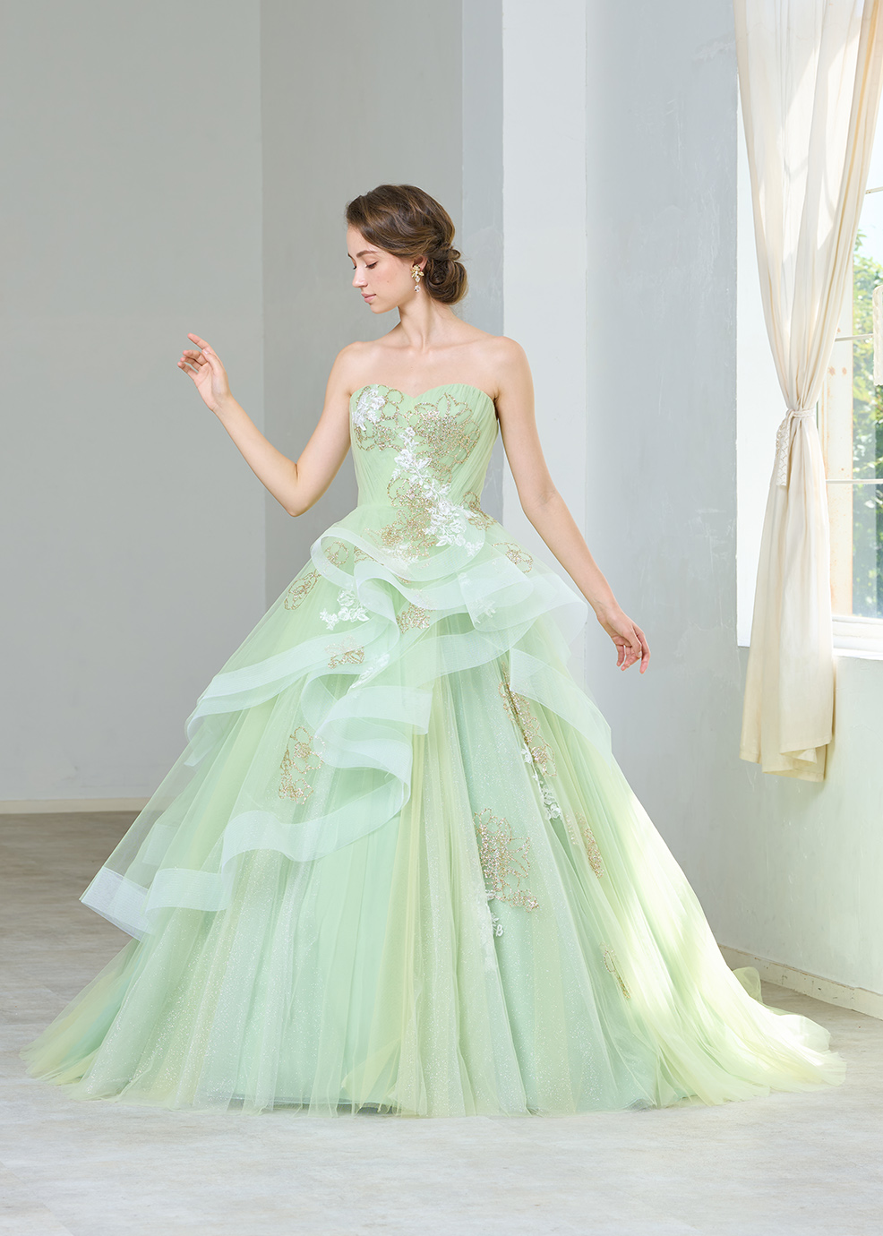 グリーン/イエローグリーンBLD-00057-14,Ballerina for Brides(バレリーナ フォー ブライズ),ウエディング,ドレス,カラードレス,ブランド,衣装,ブライダル,結婚式,結婚,結婚準備,ドレス検索,花嫁,コラム,松尾,DRESS & WEDDING,ドレスアンドウェディング