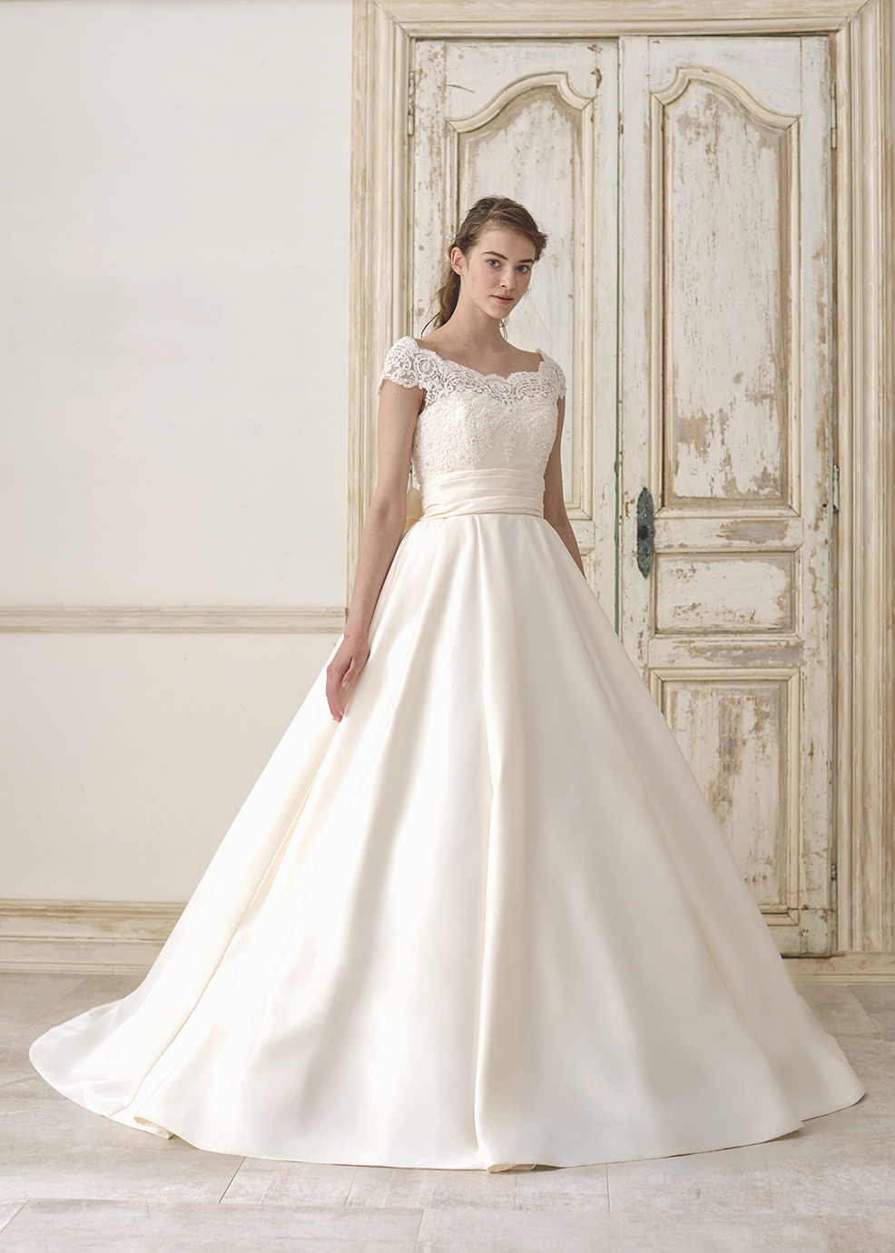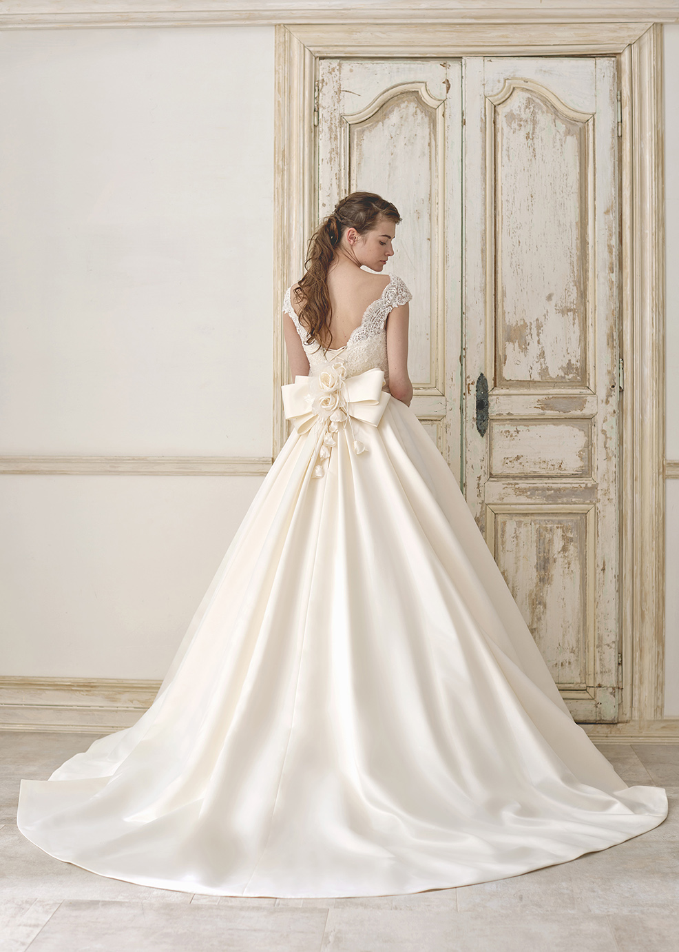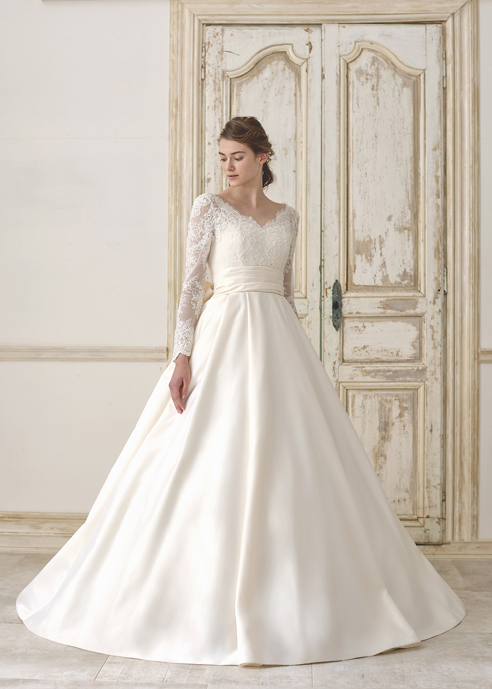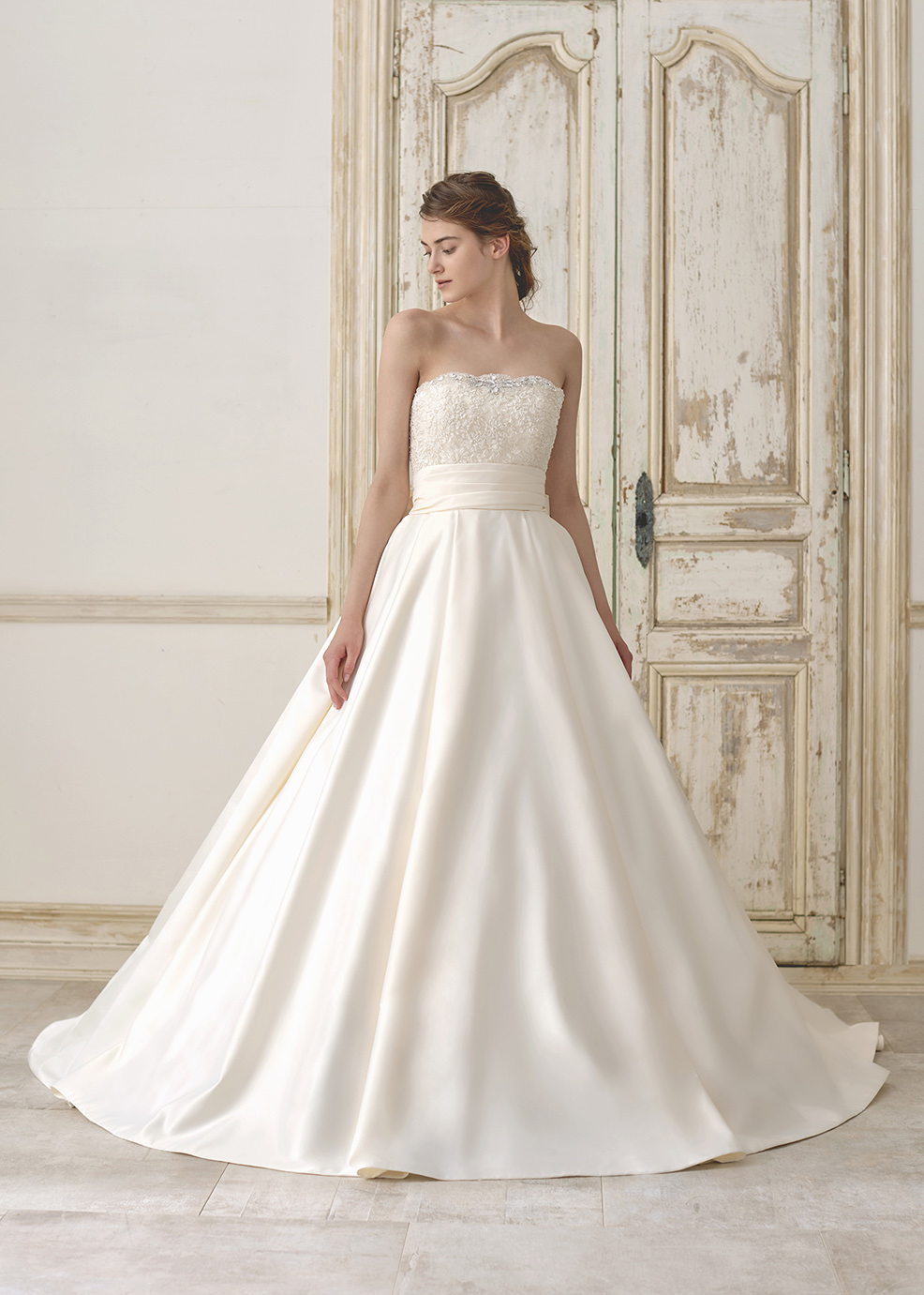 ふっくらと広がるプリンセスシルエットが可愛らしい印象に。シックで上品なスタイルを演出します。
