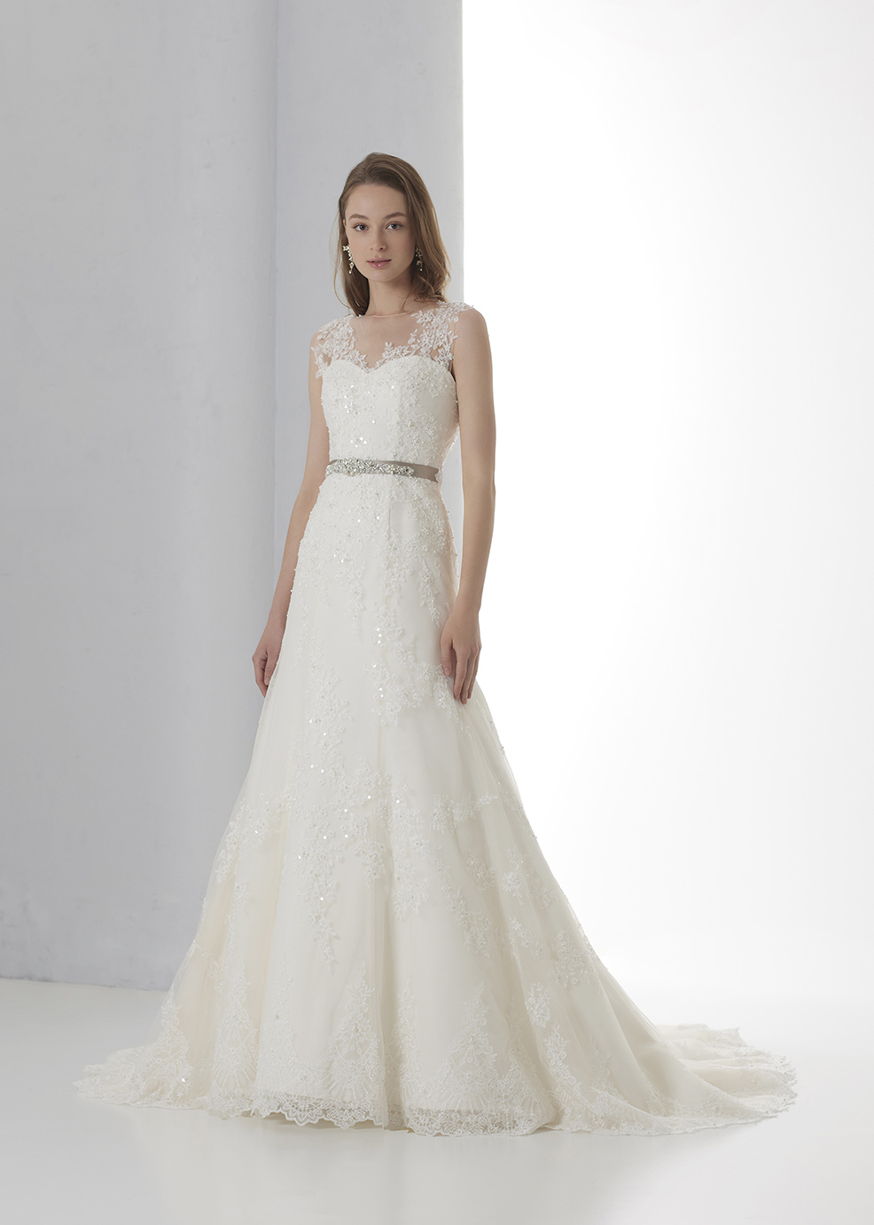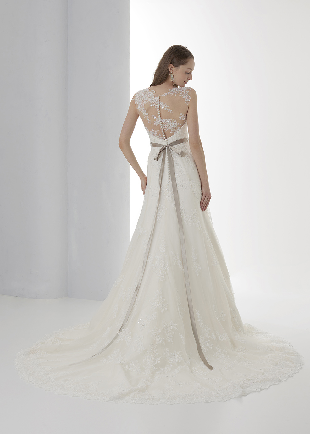 センシュアルな魅力をさりげなく香らせるバックシャンドレス。トレンドのイリュージョンネックラインでお洒落に演出。凛とした気品を放つスレンダーライン×総レースが醸し出すラグジュアリーさは、どんなシーンをも選ばない一着。