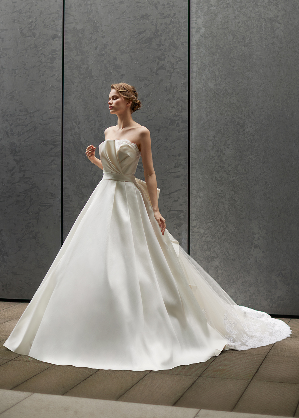 身頃はふっくらと重なり合ったデザインで、存在感を持たせます。
